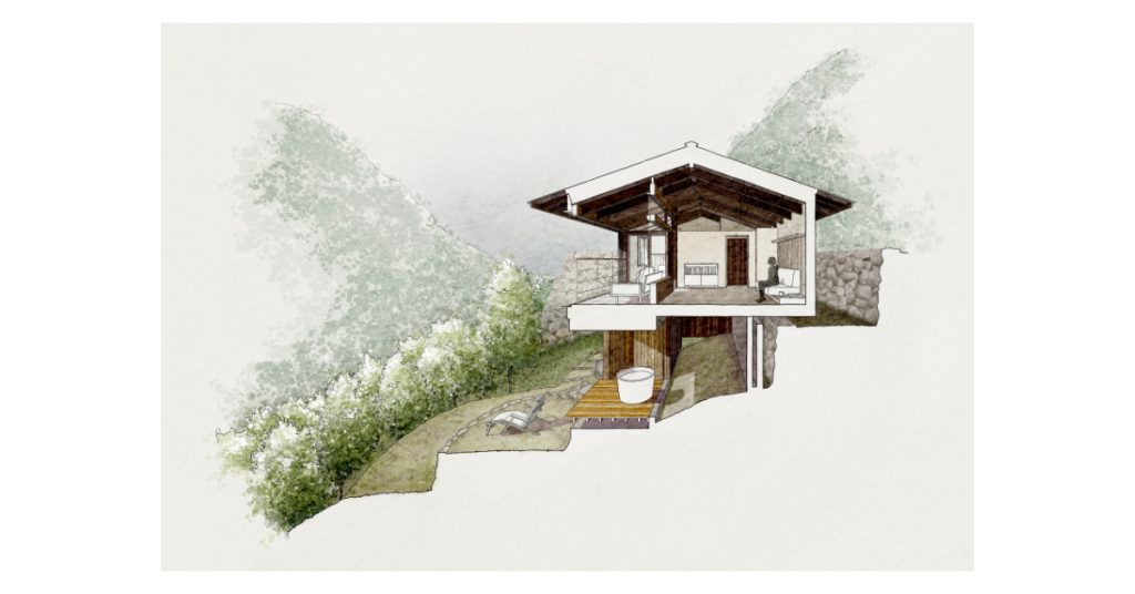 ホテル「Satologue.」の脇に、ヴィラタイプの別邸を設計しています。
